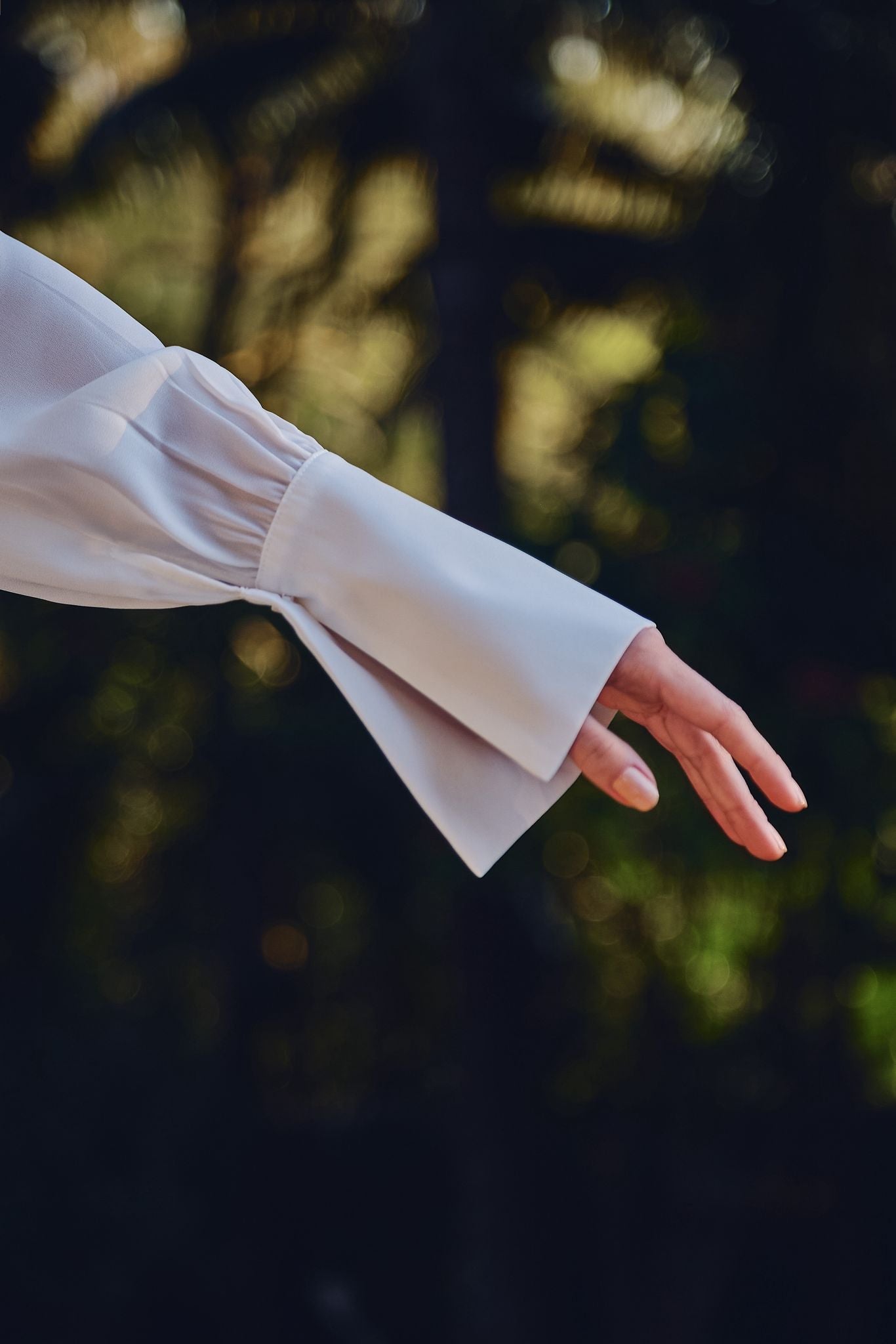 Com um caimento fluido e solto, ela apresenta um decote V sutil com detalhe de colarinho clássico. As mangas longas e amplas adicionam um toque dramático e refinado. Ideal para combinar com peças ajustadas, criando um equilíbrio visual contemporâneo.