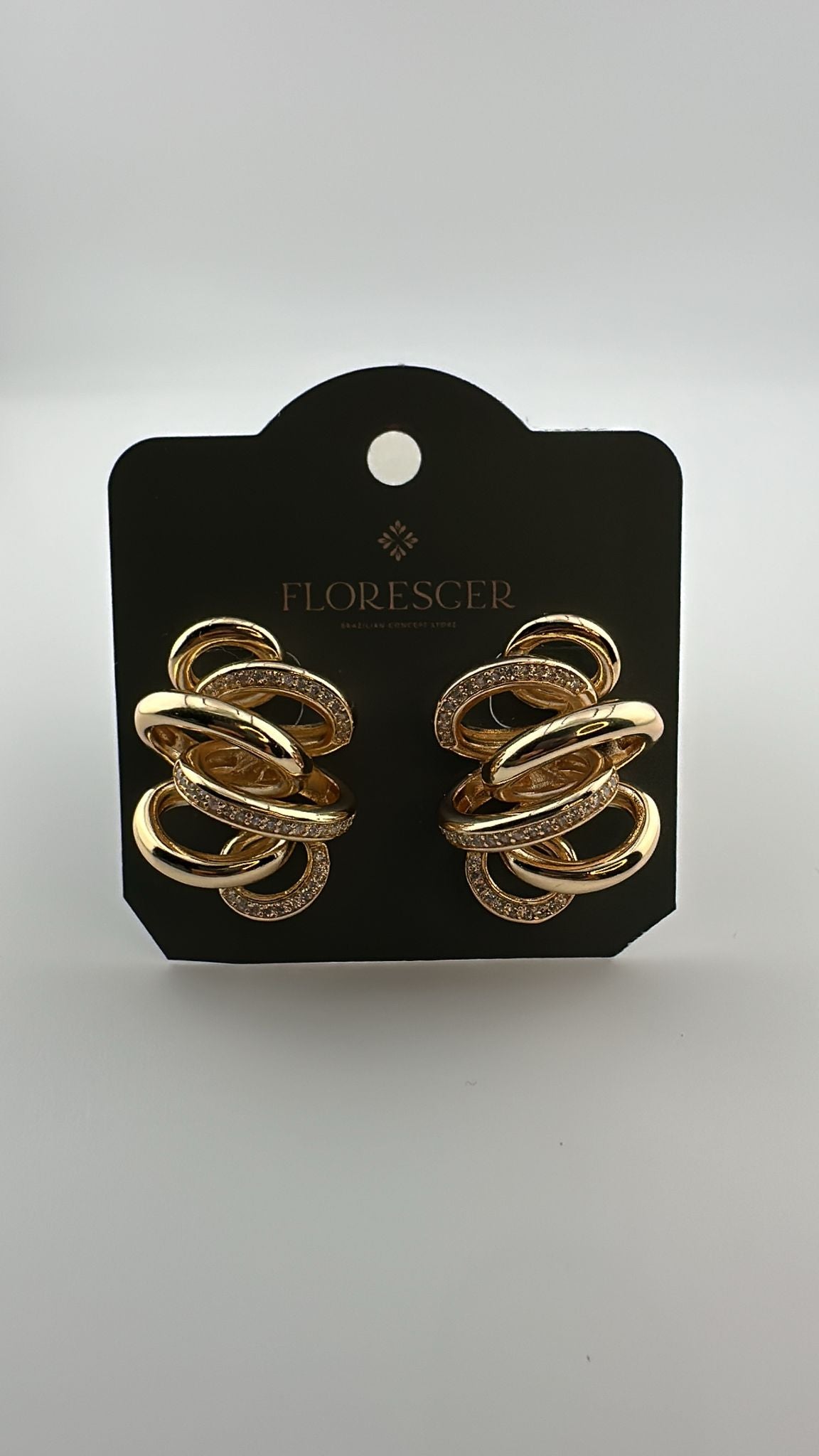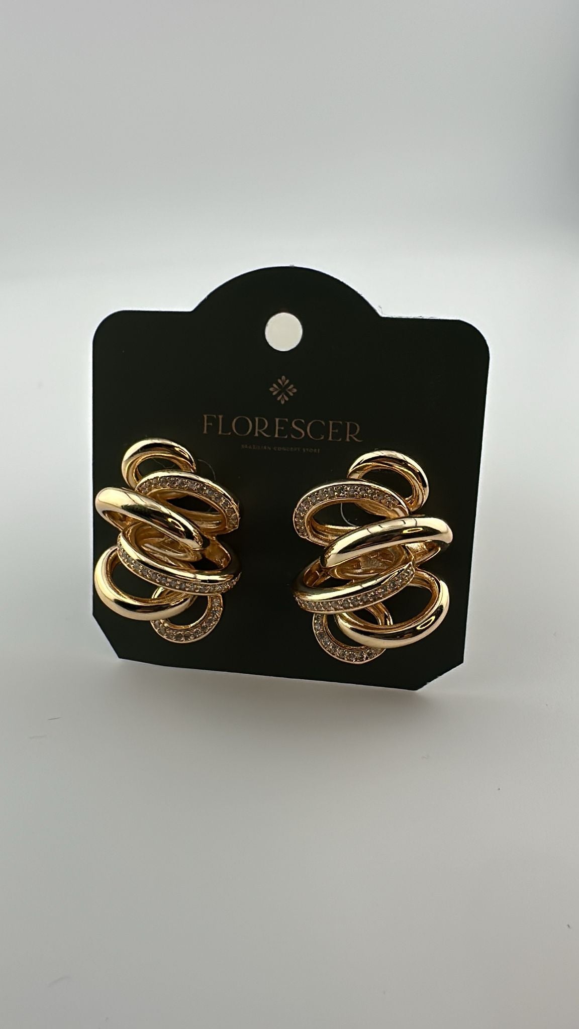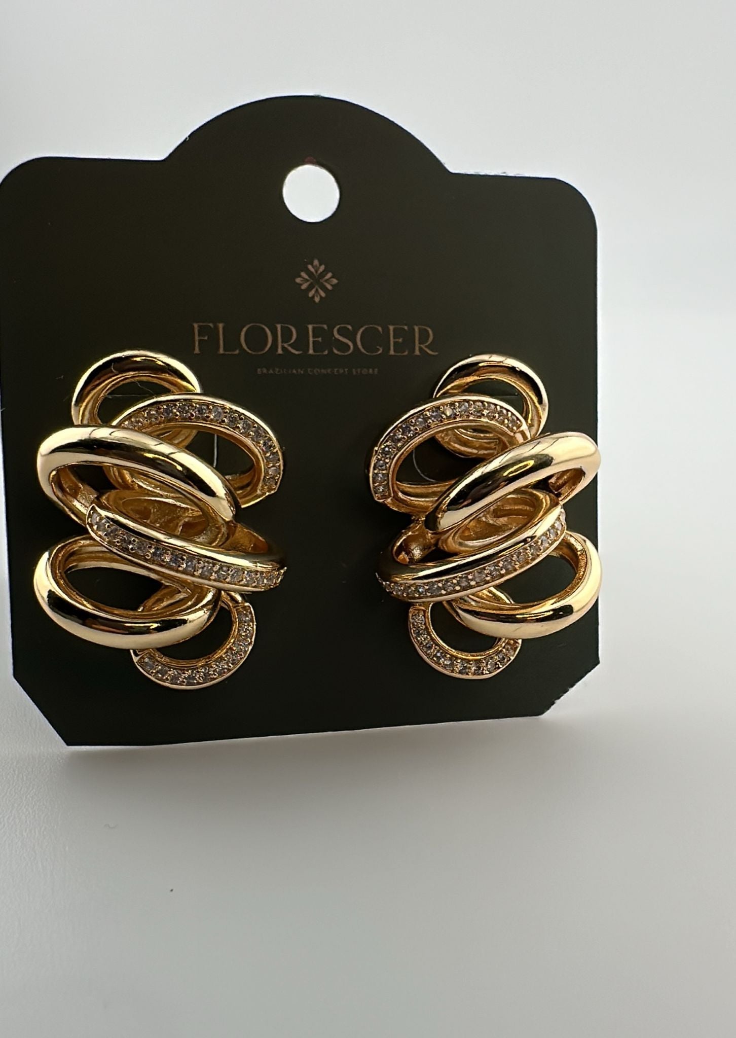 Brinco Grande Nó Torcido Cravejado- Banho de Ouro 18K