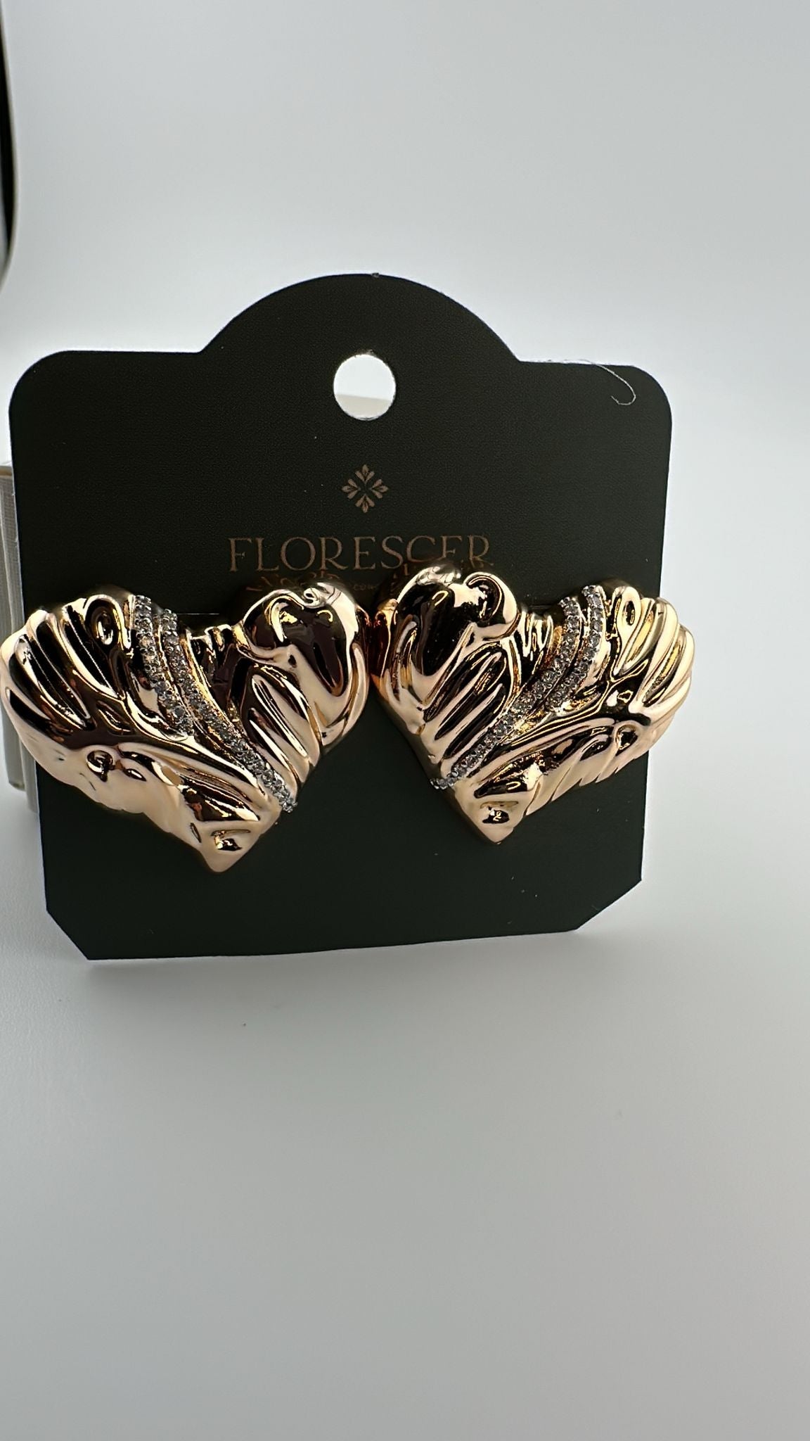 Brinco Semijoia Coração Real – Cravejado com Zircônia, Banho de Ouro 18K