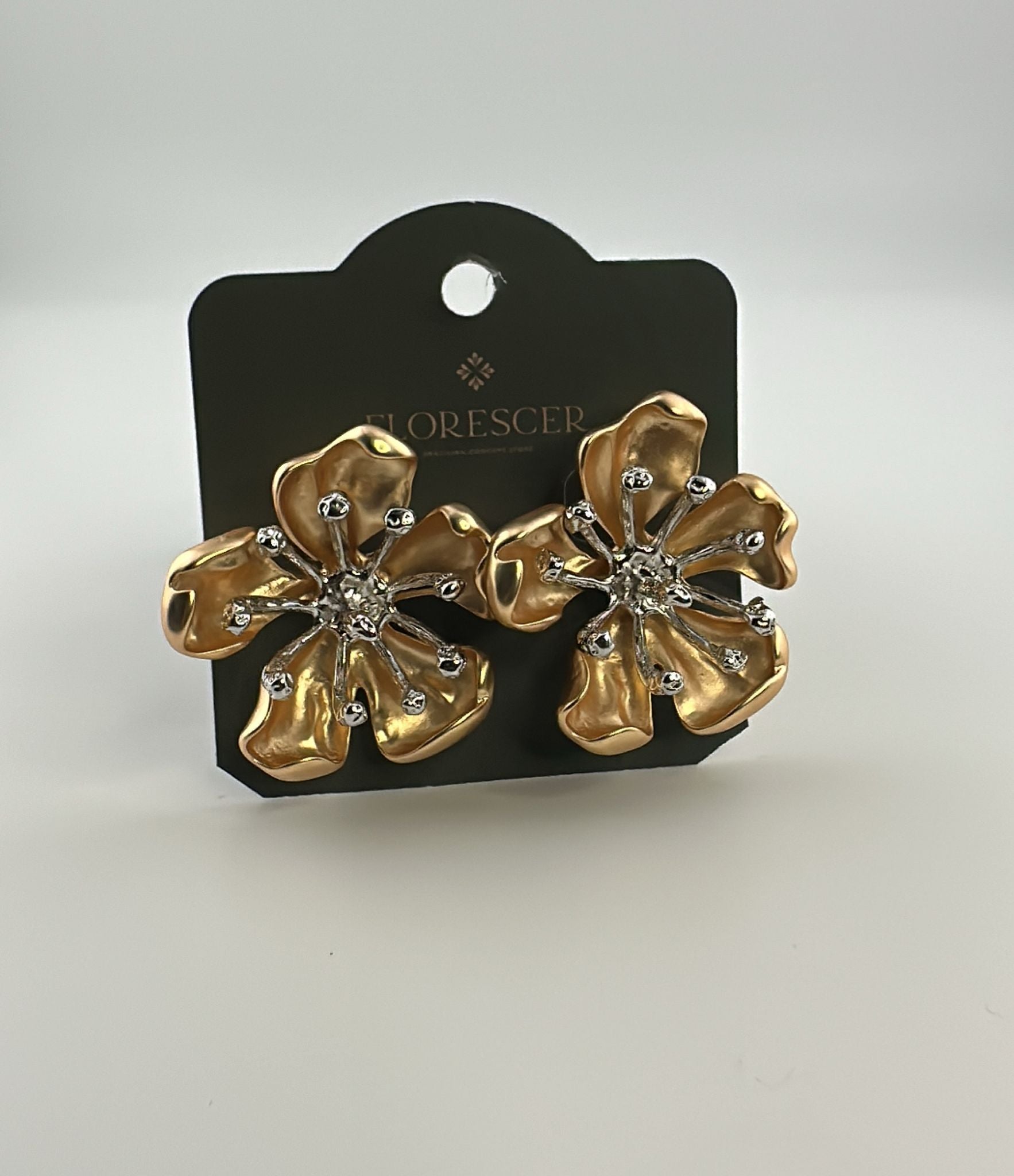 Brinco Semijoia Flor com Ródio Branco e Banho de Ouro 18K – Sofisticação e Elegância