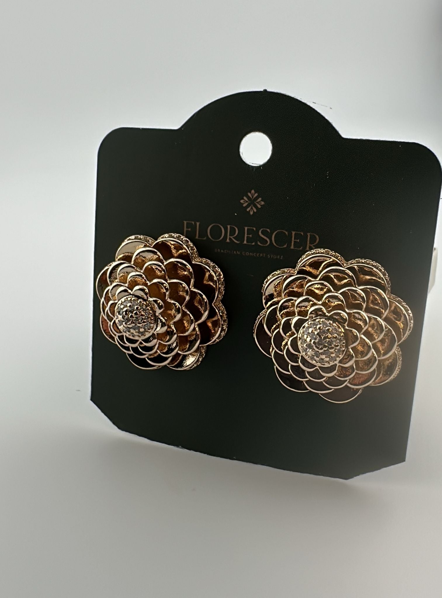 Brinco Semijoia Flor Cravejada com Zircônia – Banho de Ouro 18K, Modernidade e Elegância