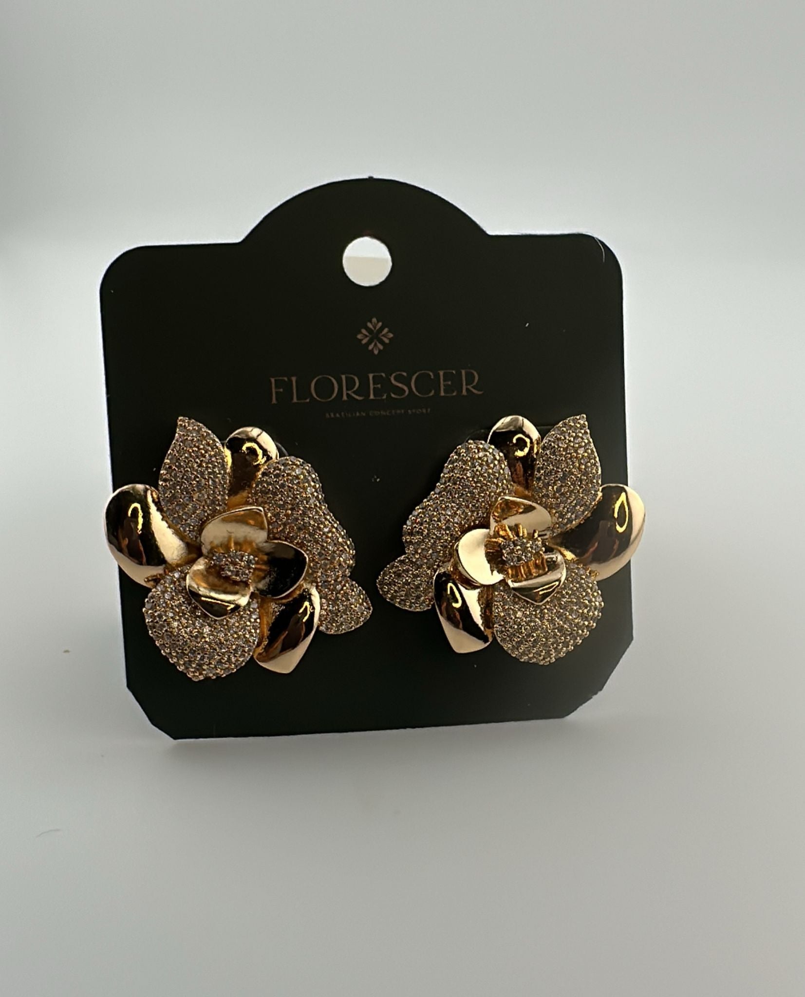 Brinco Semijoia Flor Cravejada com Zircônia – Banho de Ouro 18K