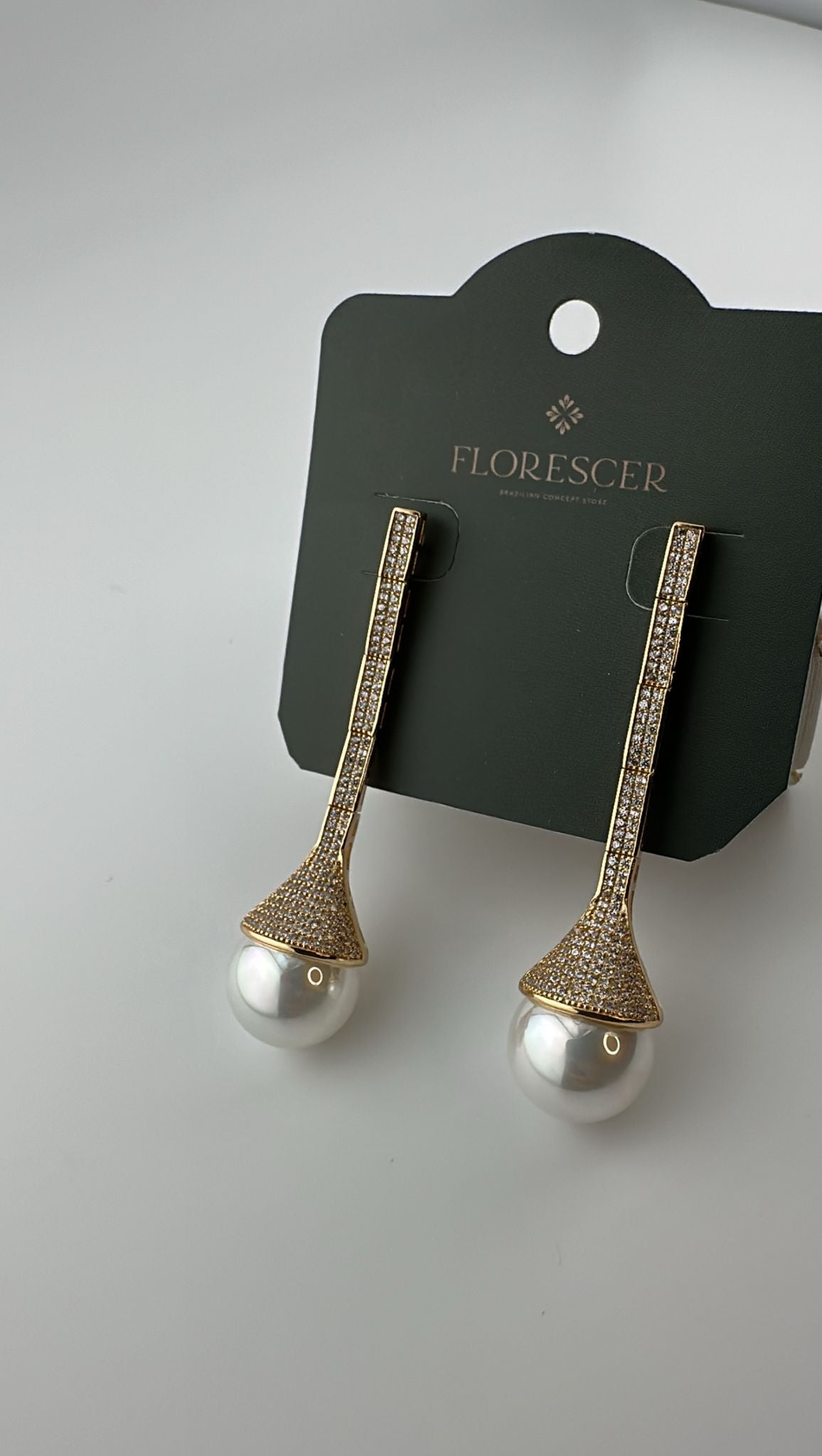 Brinco Semijoia Gota com Pérola Shell – Cravejada com Zircônia, Banho de Ouro 18K, Acabamento de Joia, Sofisticação e Elegância