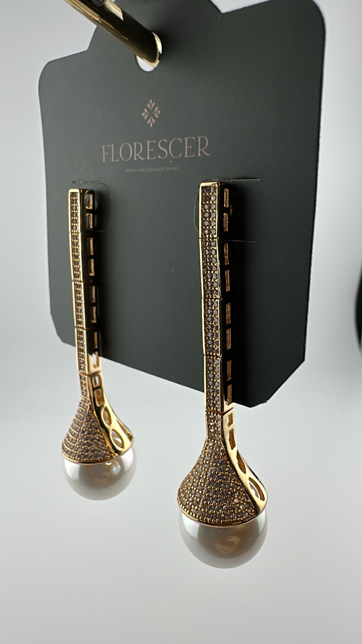 Brinco Semijoia Gota com Pérola Shell – Cravejada com Zircônia, Banho de Ouro 18K