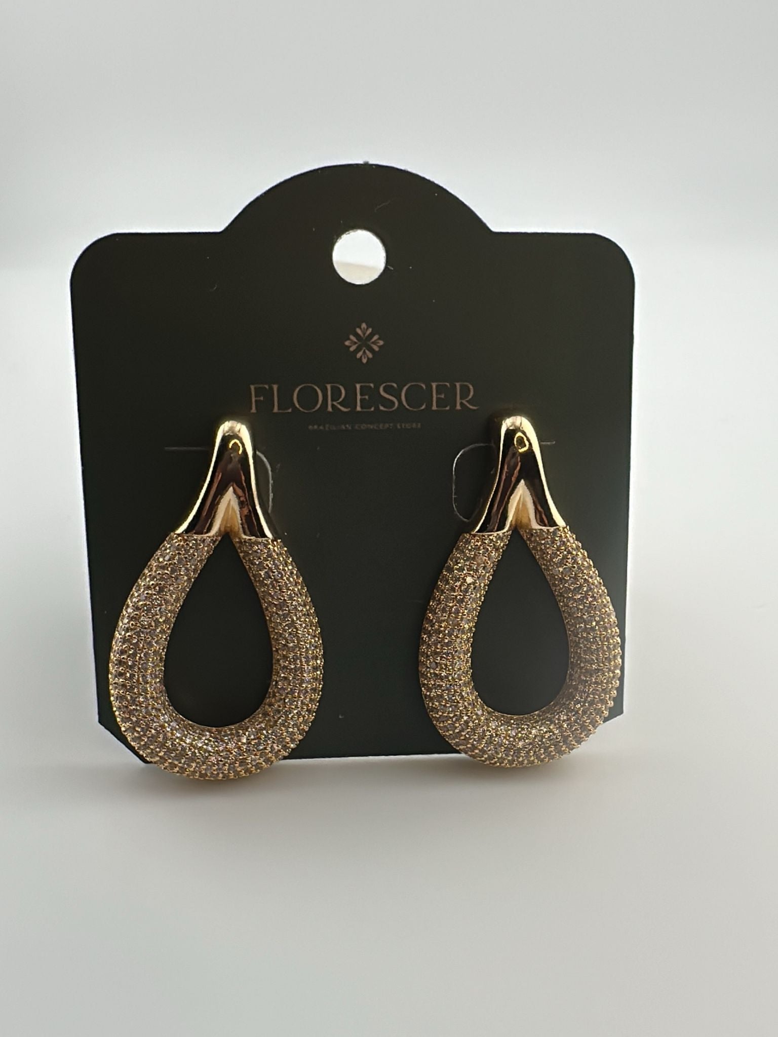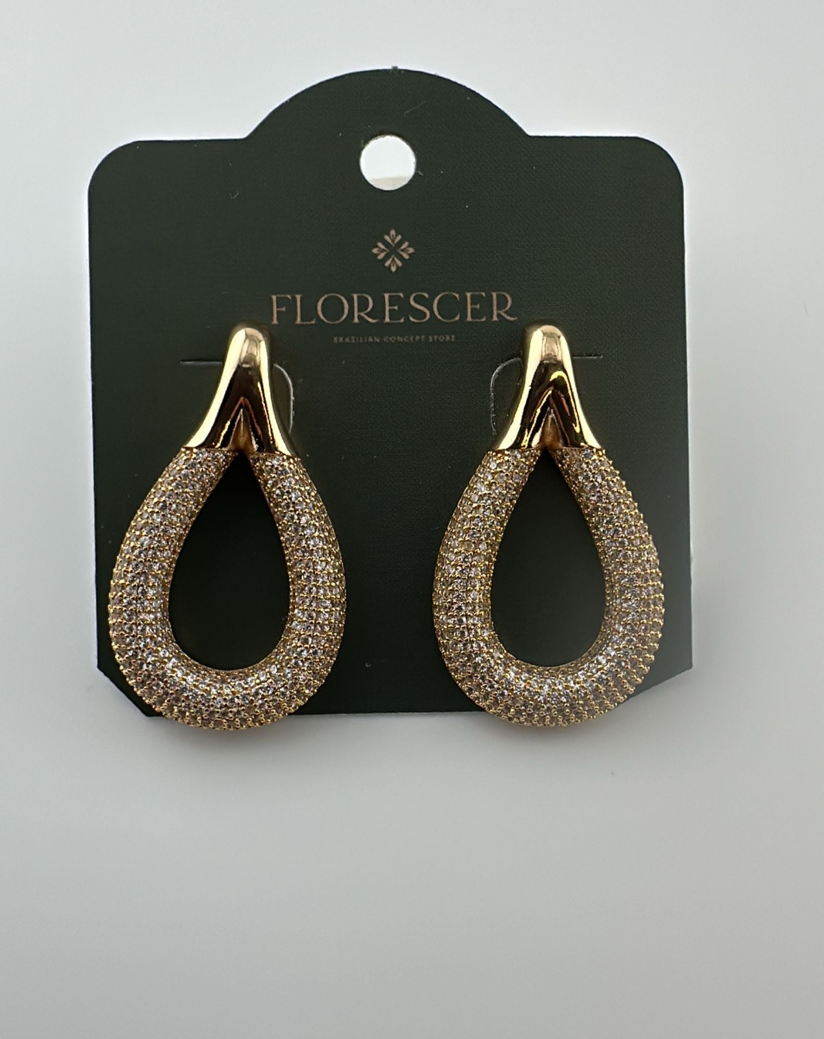 Brinco Semijoia Gota Cravejada com Zircônia – Banho de Ouro 18K
