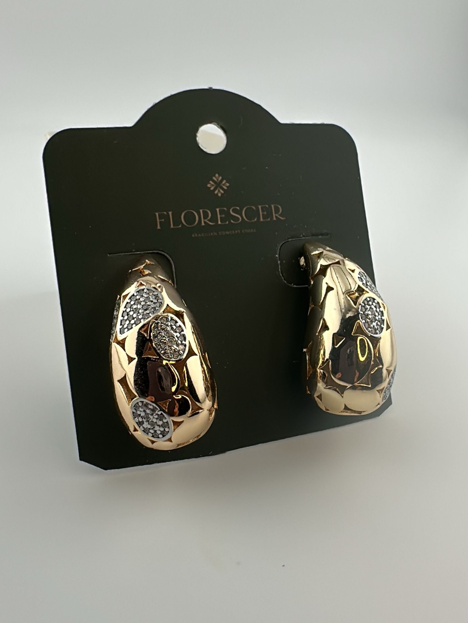 Brinco Semijoia Gota Cravejada com Zircônia – Banho de Ouro 18K