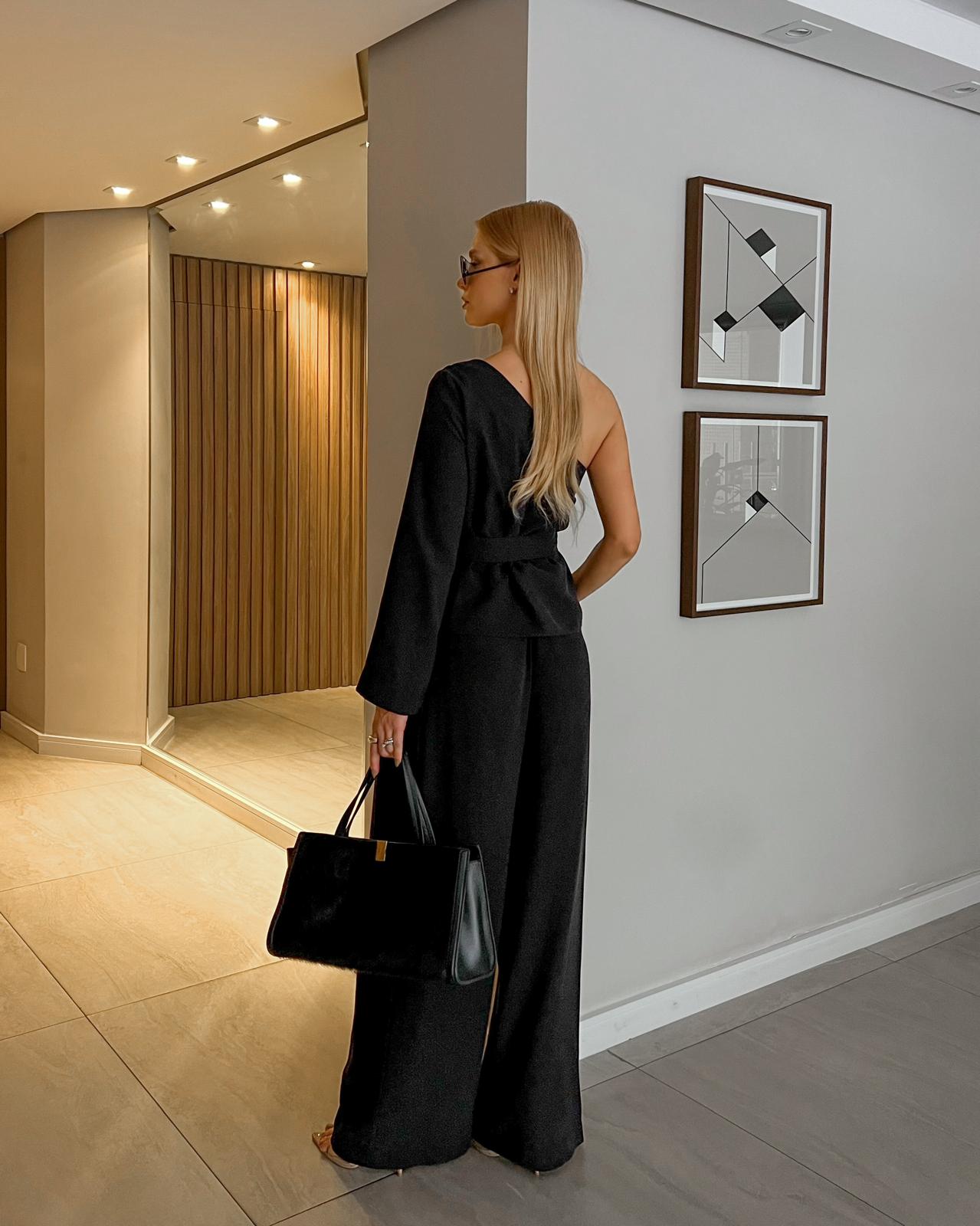 Conjunto Calça Pantalona e Blusa Ombro Único "Power Look"